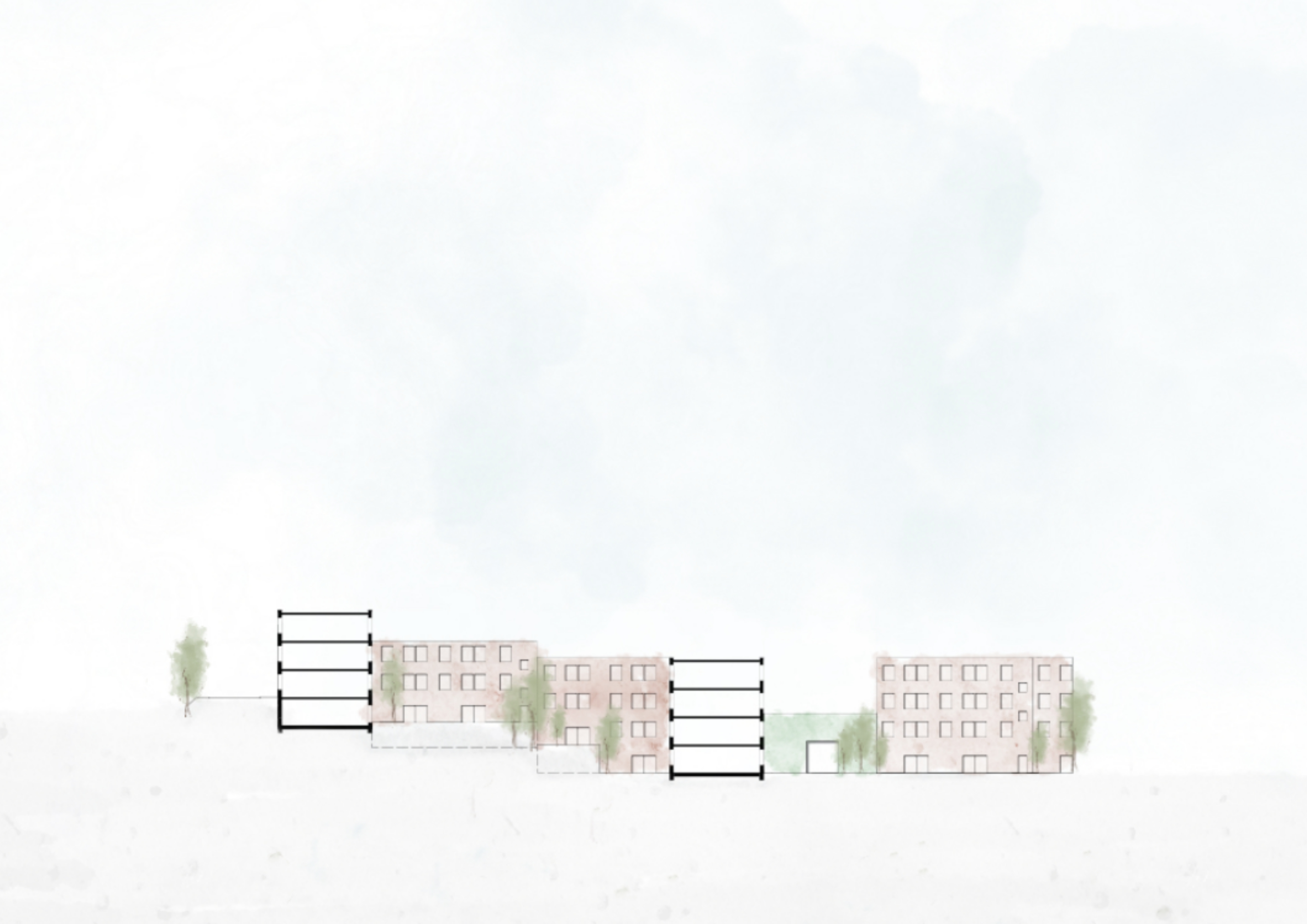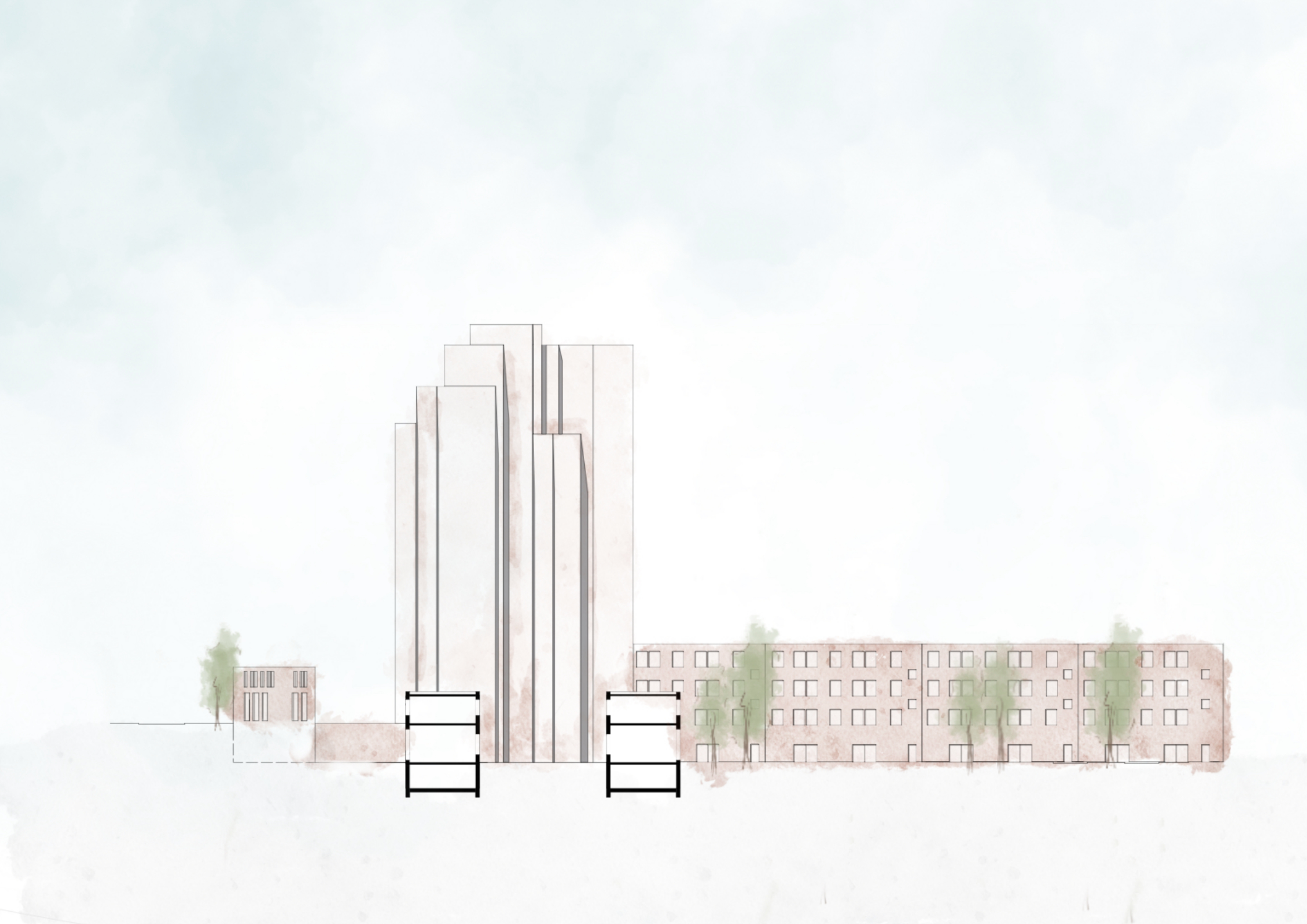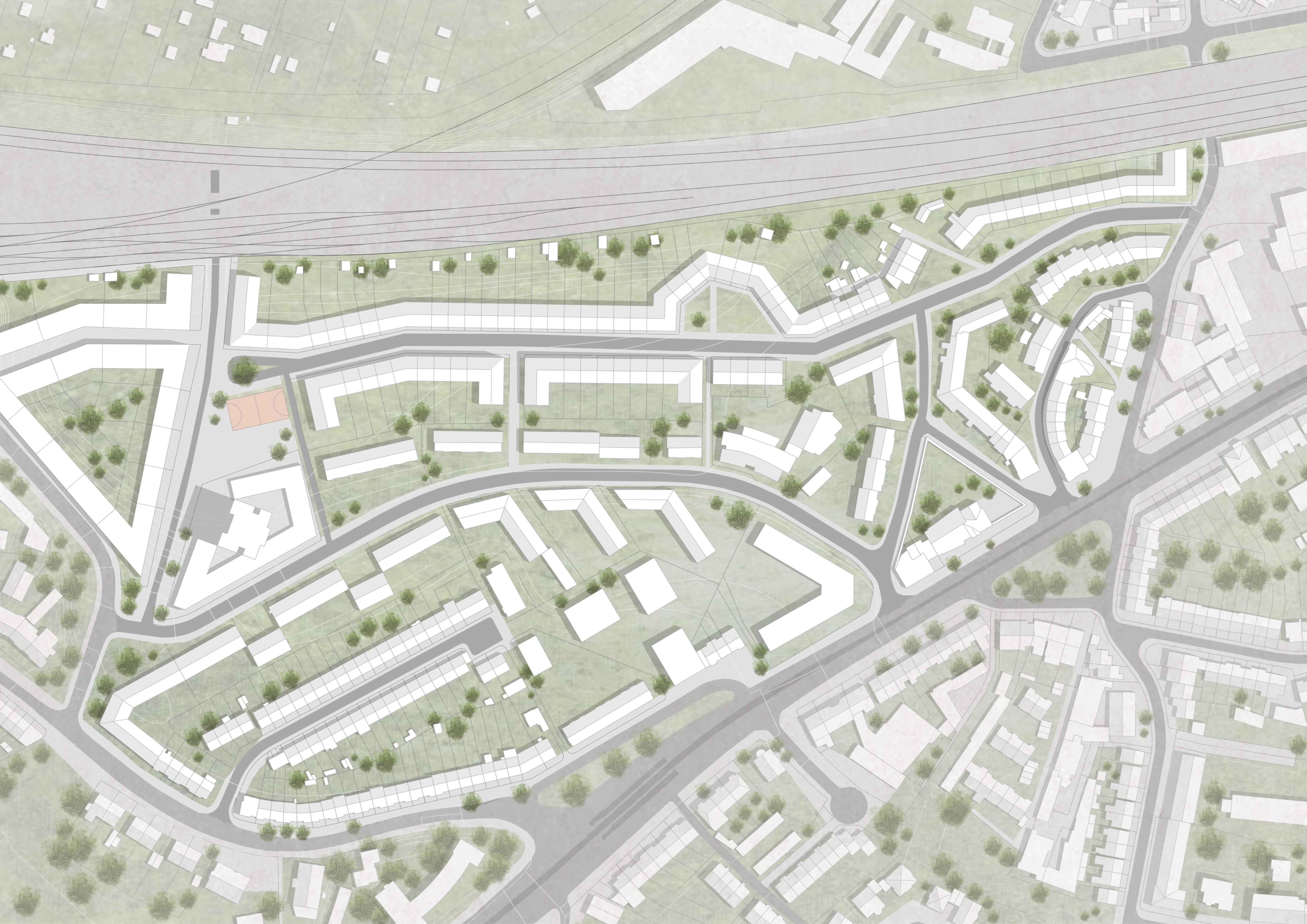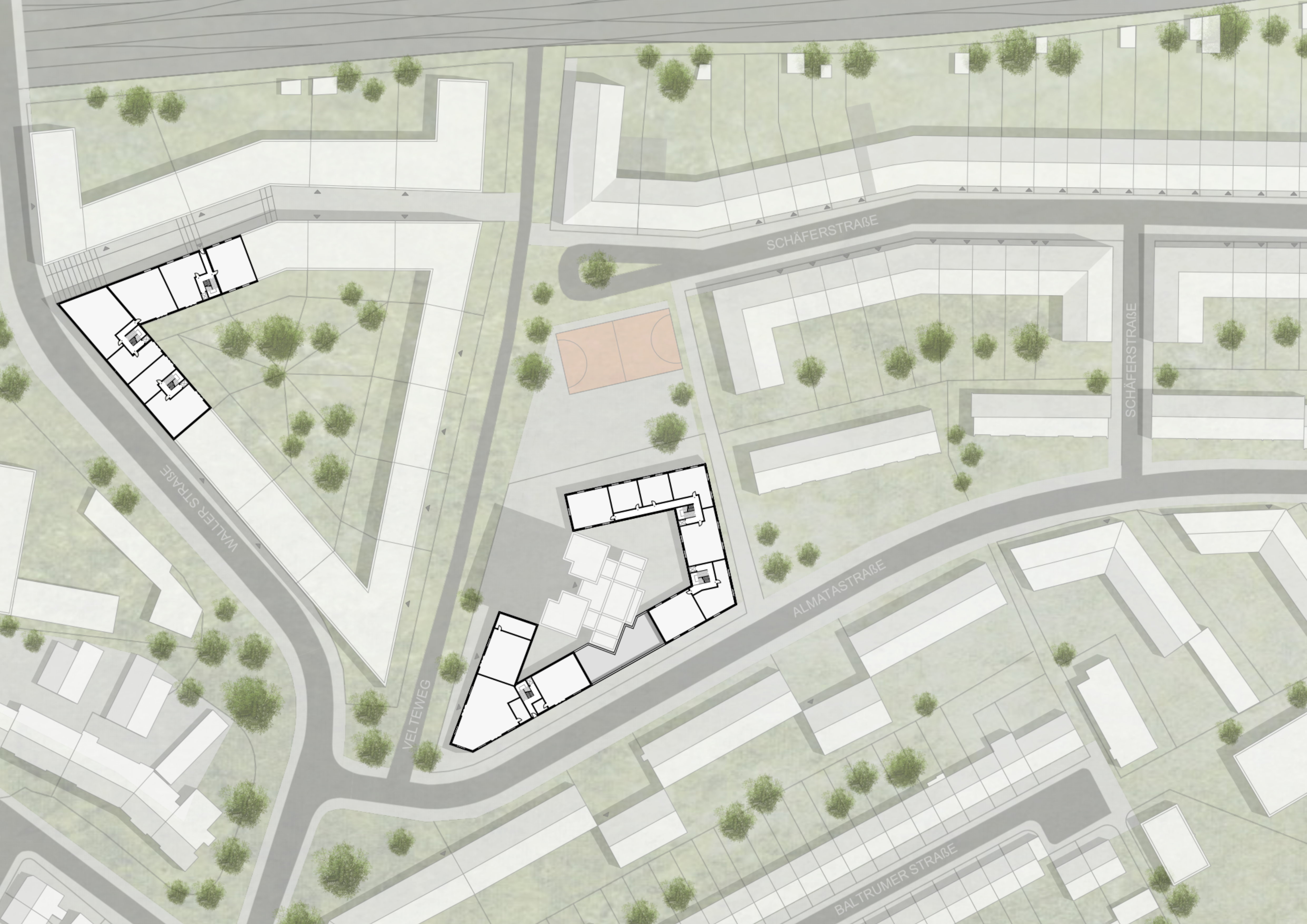 Der Entwurf für das Bahnschienengebiet in Bremen Walle sieht eine Bebauung des tristen Grünstreifens durch Reihenhäuser vor. Die neu entstehende Schäferstraße stellt einen verkehrsberuhigten Bereich mit Dienstleistungen und Gewerbe im Erdgeschoss und bezahlbaren Wohnen in den Obergeschossen dar. Mehrere abgehende Wege und das Vergrößern des bereits bestehenden Mäusetunnels, sollen den Passanten ein sichereres Gefühl vermitteln. Um das Almatahochaus besser in seine Umgebung einzu-fügen, wird das Erdgeschoss erweitert und es entsteht ein für die Nachbarschaft gemeinschaftlich nutzbarer Vorplatz.